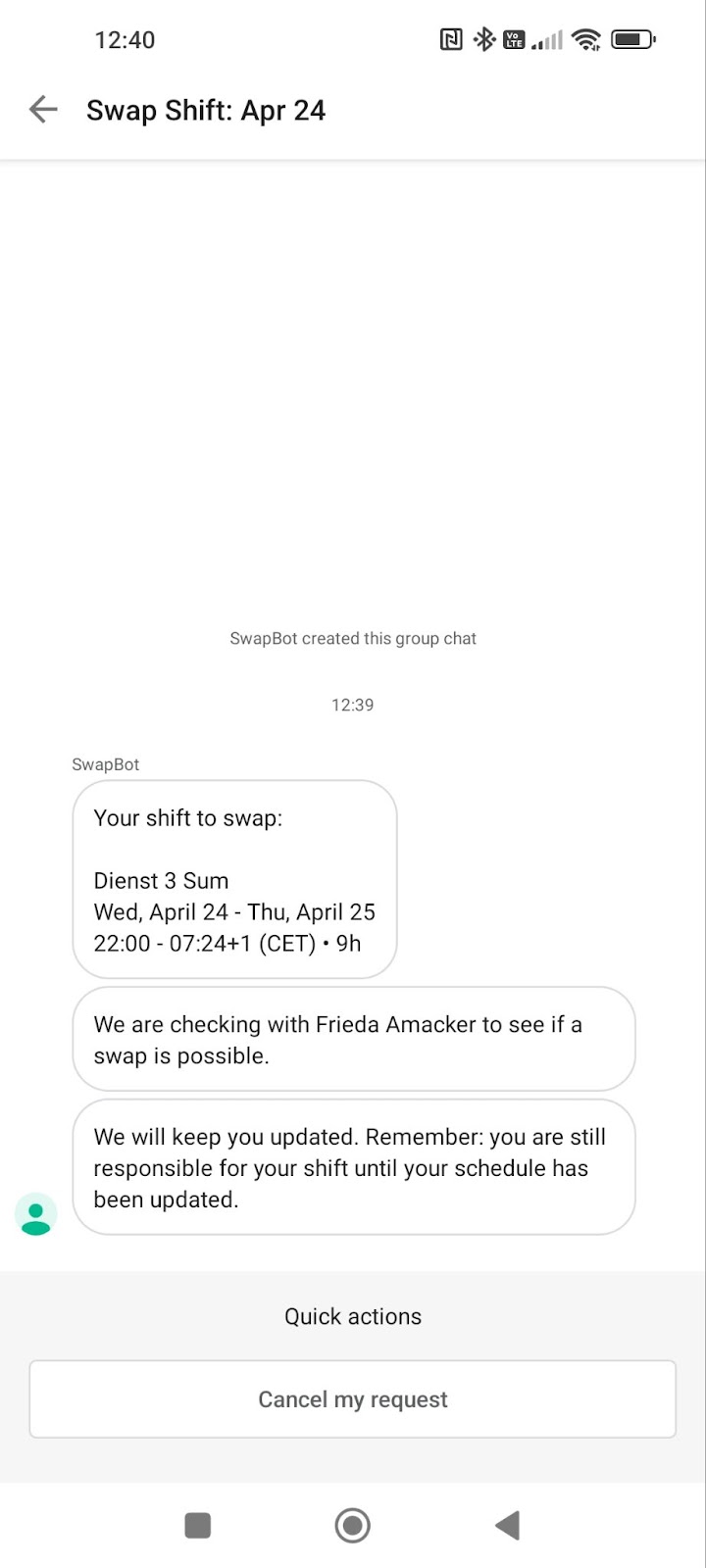 Werden Mitarbeitende über die Ablehnung einer Schichttauschanfrage informiert?