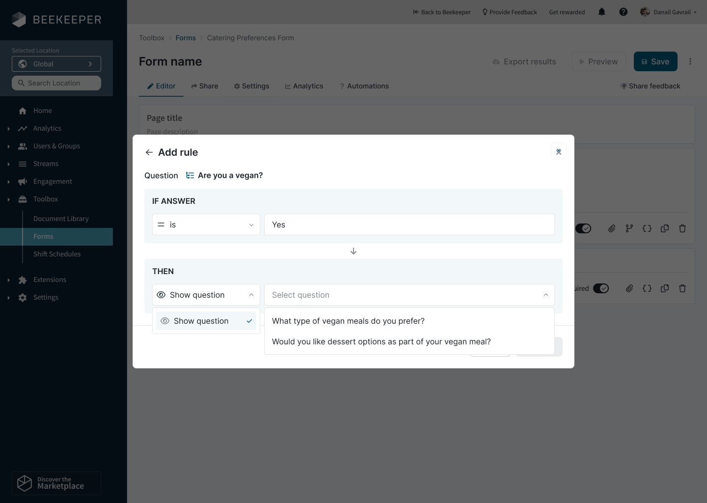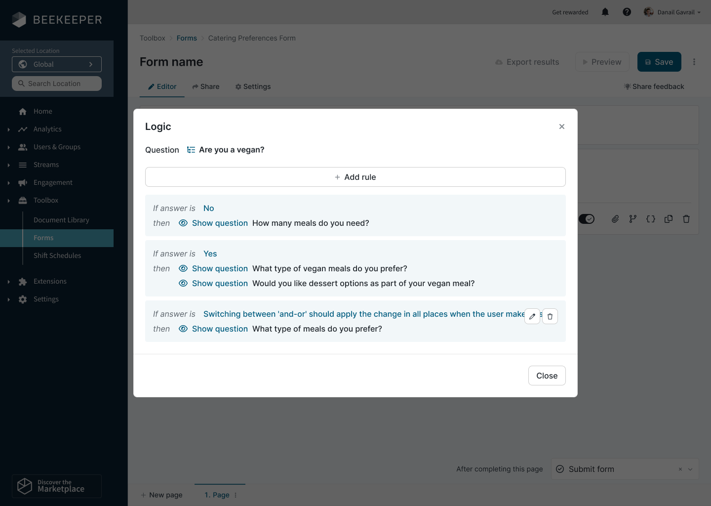 - Speichere deine Logik. Du kannst mehrere Bedingungen und mehrere Ergebnisse für die gleiche Frage hinzufügen.