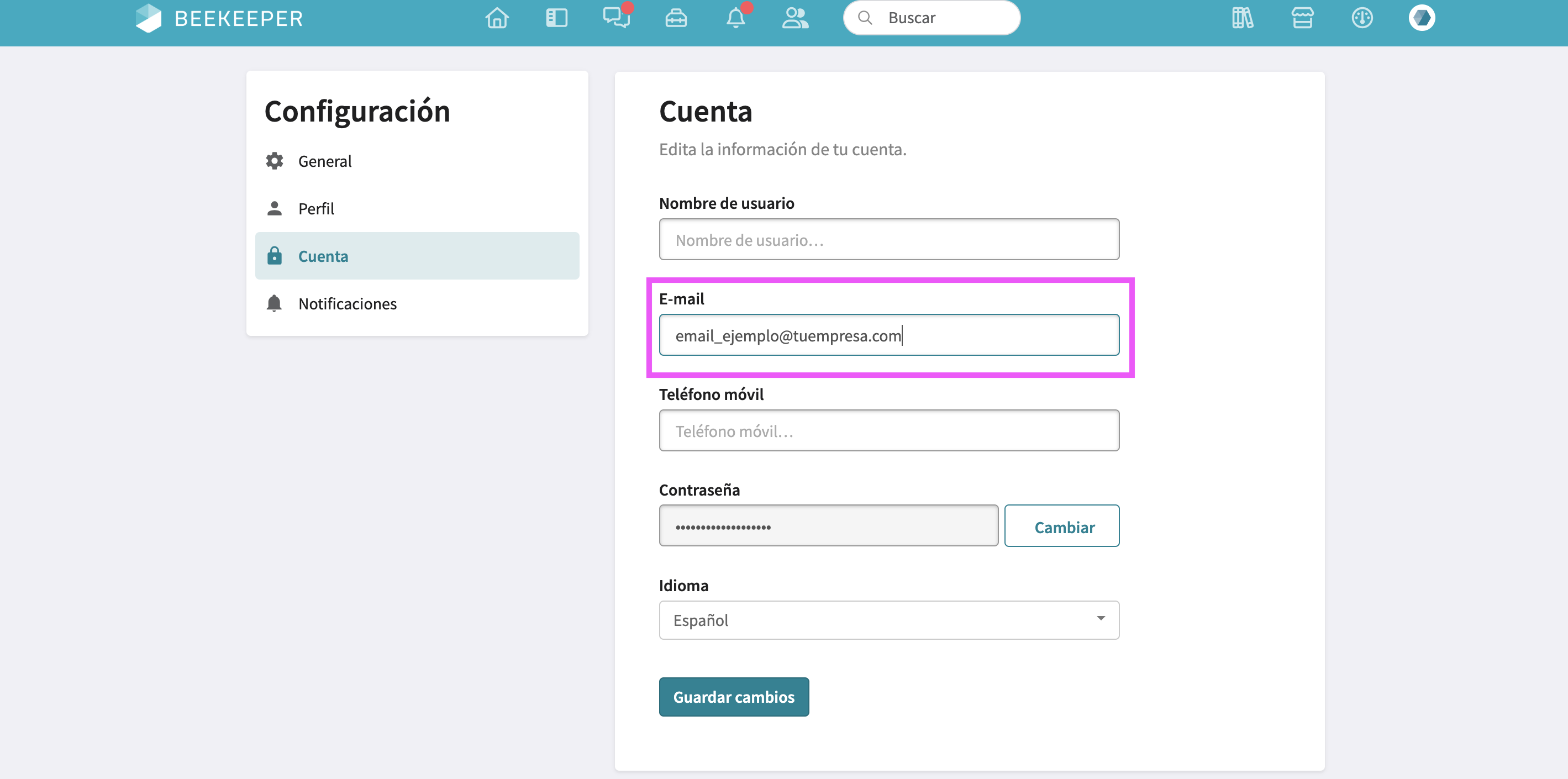 Cuando esta marca está activada, permite a los usuarios modificar su dirección de correo electrónico en 'Perfil y Configuración' > 'Cuenta'.