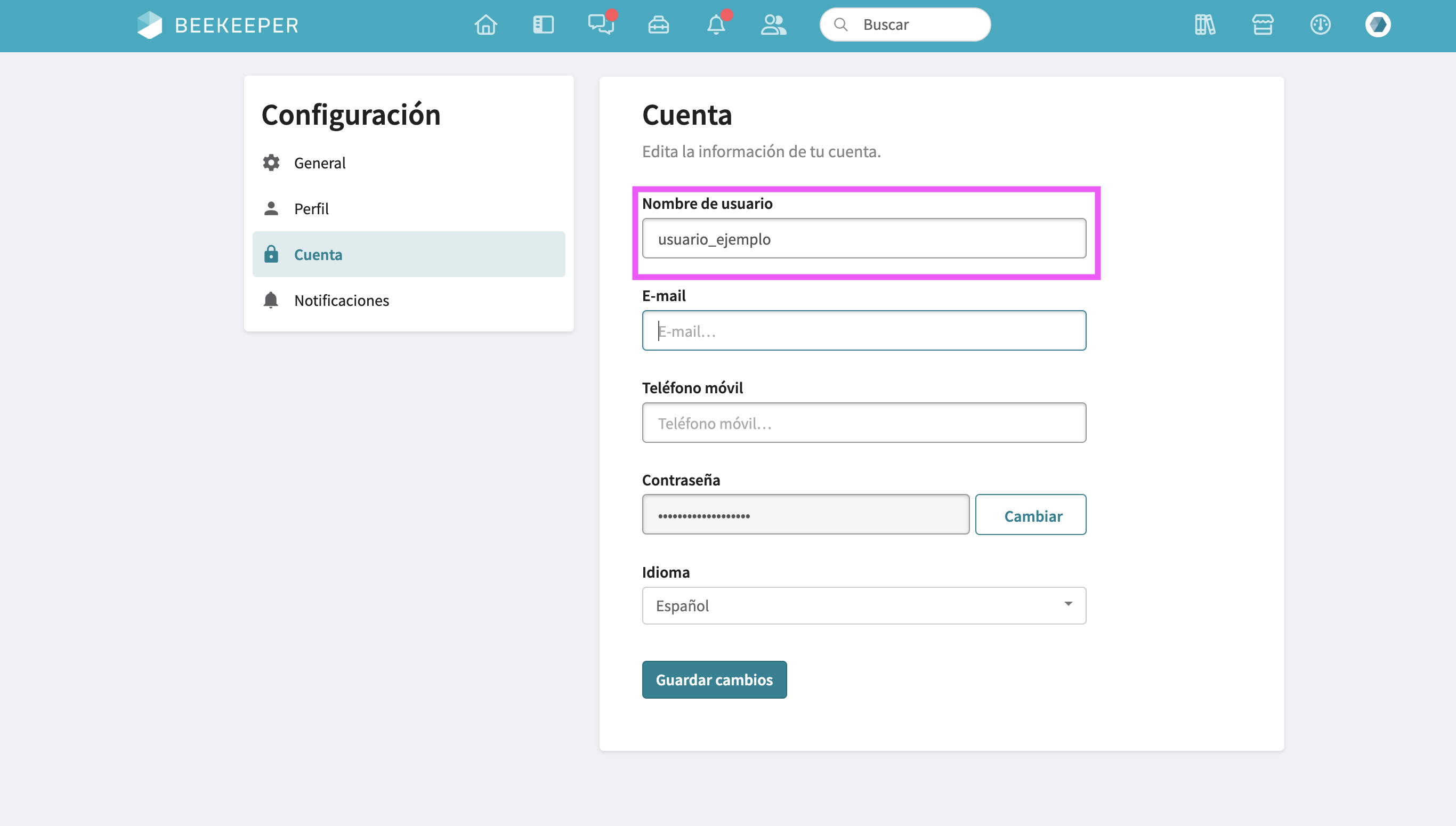 Cuando esta marca está activada, permite a los usuarios cambiar su nombre de usuario en 'Perfil y Configuración' > 'Cuenta'.