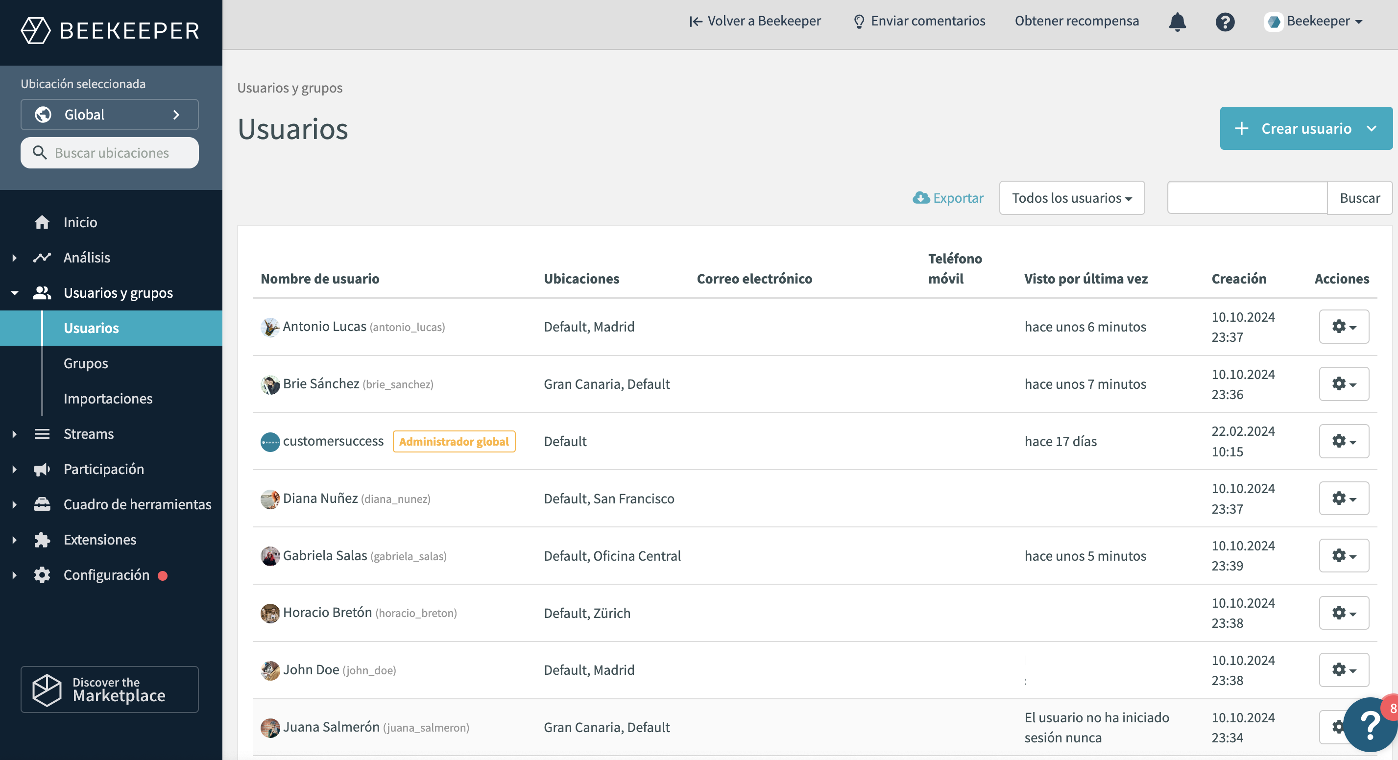 En Usuarios y Grupos, verás una visión general de los grupos, usuarios y también las Importaciones de usuarios.