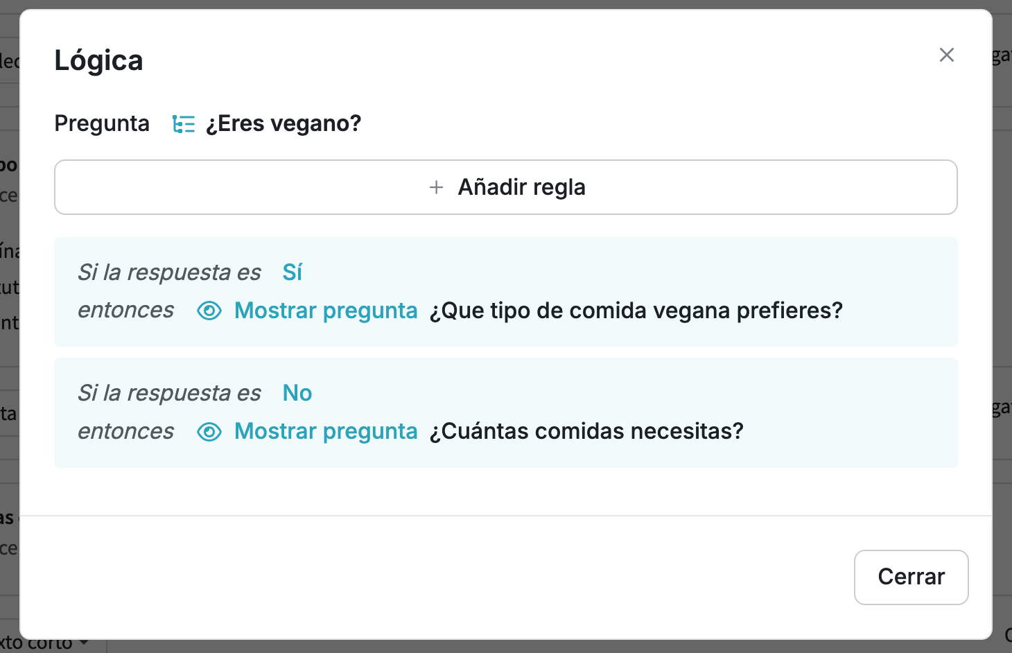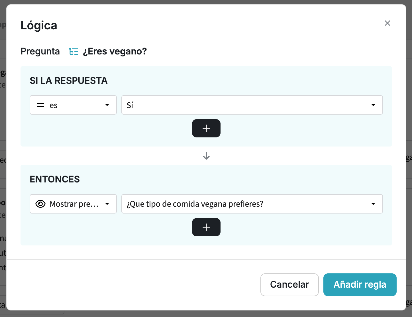 - Guarda tu lógica. Puedes añadir varias condiciones y resultados para la misma pregunta.