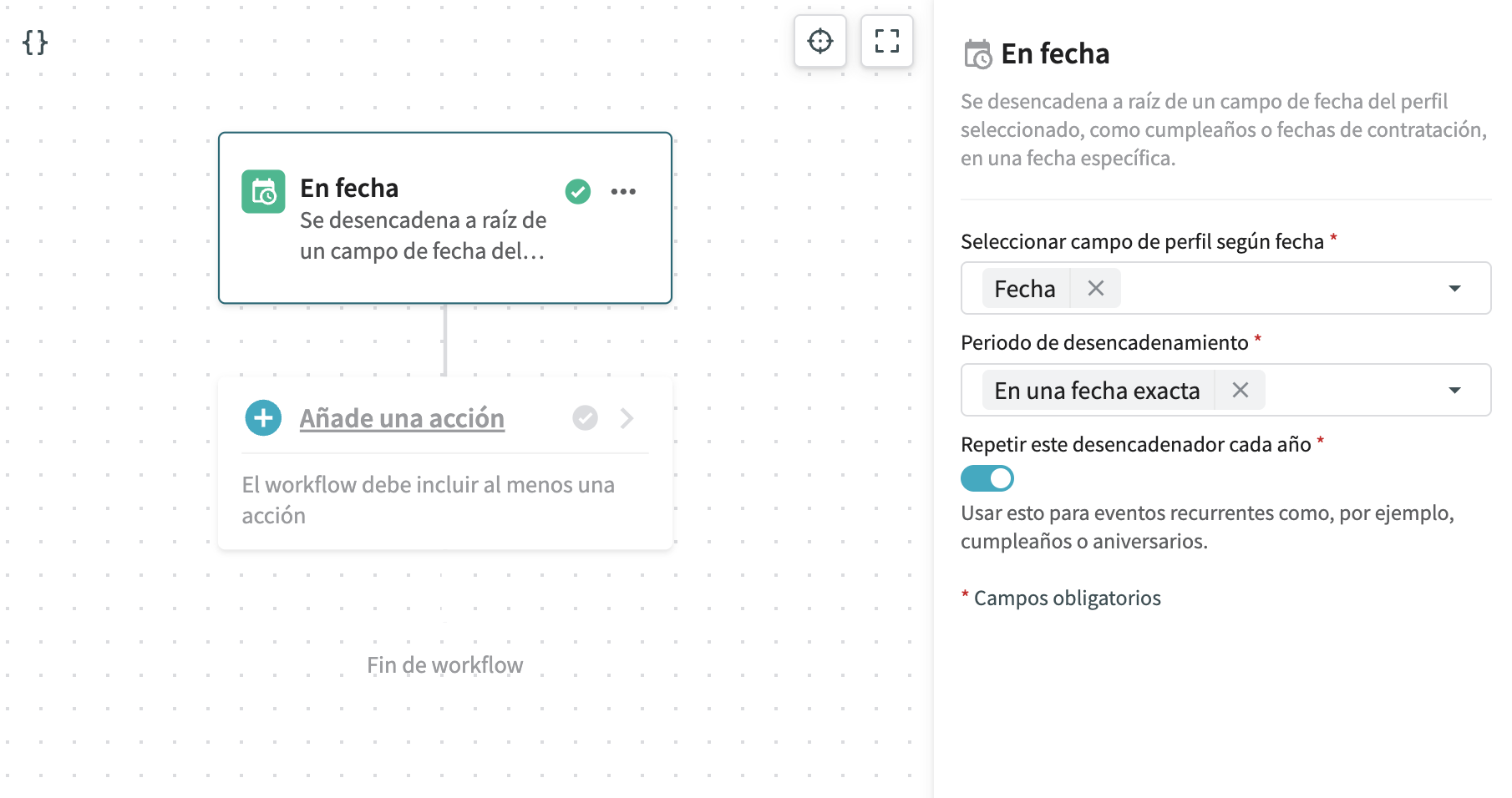 🔧 Cómo configurar el activador «En fecha»