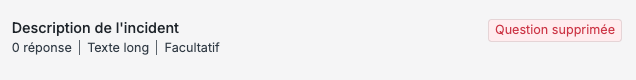 Ce mélange d'étiquettes, de comptages et de balises vous permet de distinguer facilement les questions actuelles, supprimées, obligatoires, facultatives et conditionnelles lors de l'examen des analyses.