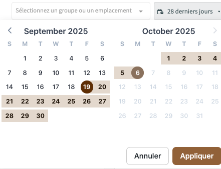Vous pouvez filtrer les résultats par emplacement ou par groupe (un seul peut être appliqué à la fois).