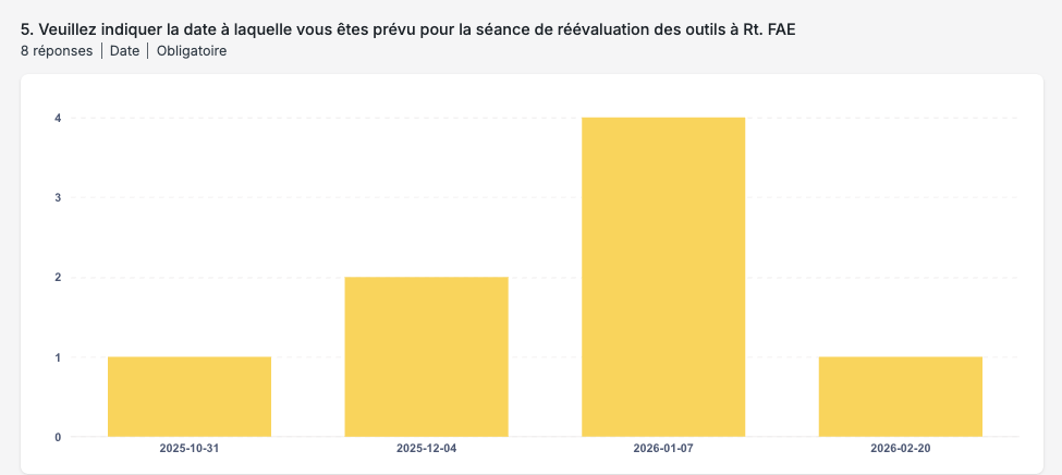 Ces filtres s'appliquent à l'ensemble de la vue, garantissant que les tableaux et les graphiques reflètent uniquement le sous-ensemble de réponses sélectionné.