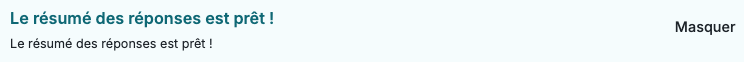 - Le résumé est généré uniquement lorsque vous cliquez sur le bouton « Résumer » sur la page des réponses.