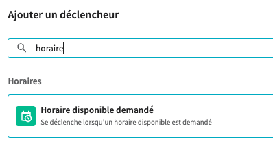 Le déclencheur « Horaire disponible demandé » permet de lancer un workflow chaque fois qu'un employé réclame un horaire de travail sans affecté. Cela peut être très utile pour s'assurer que les quarts de travail ouverts sont correctement pourvus.